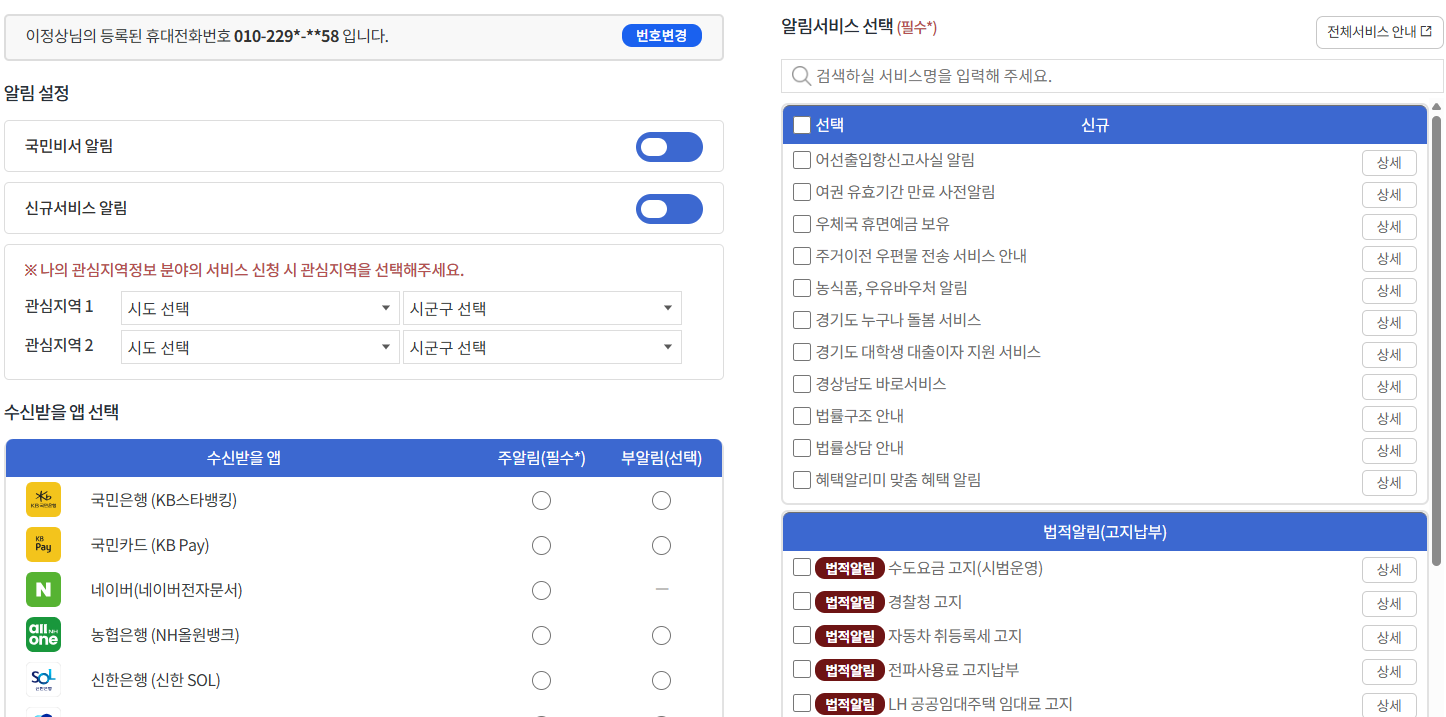 | 토스 | 전체메뉴 > 민원 > 공공알림 > 국민비서 신청 |