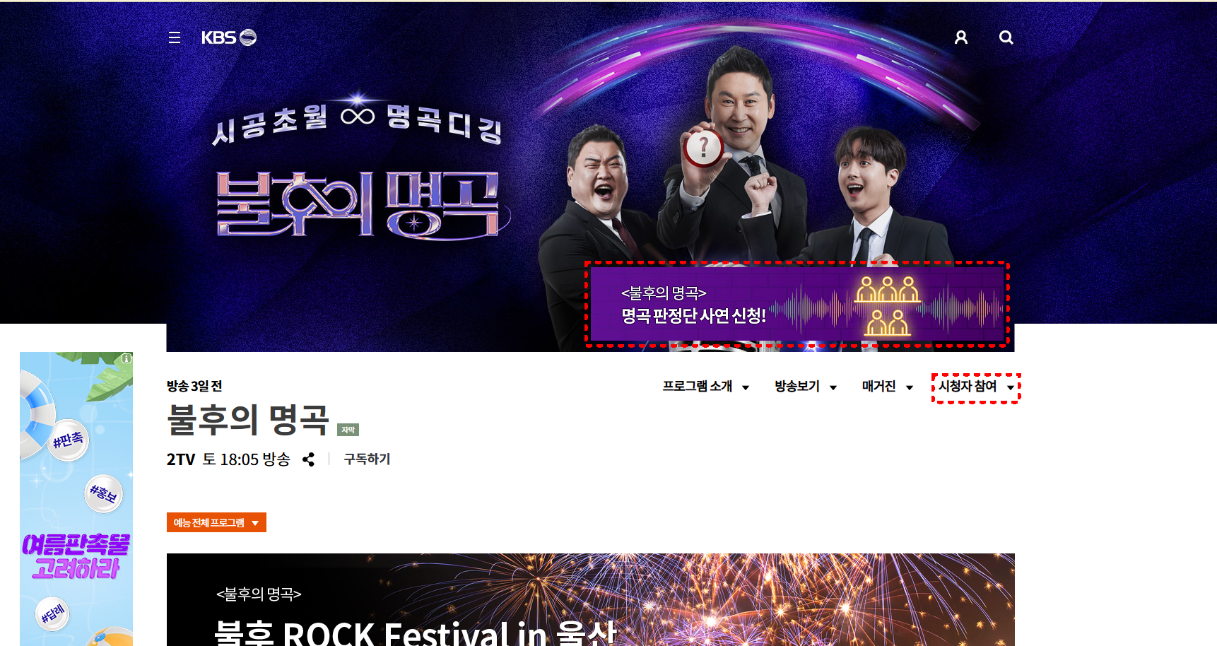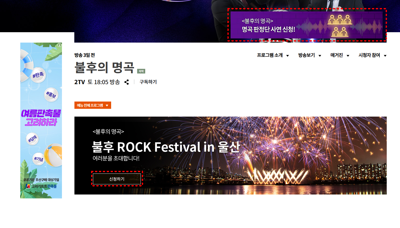 | 신청 사이트 | 불후의 명곡 명곡 판정단 |